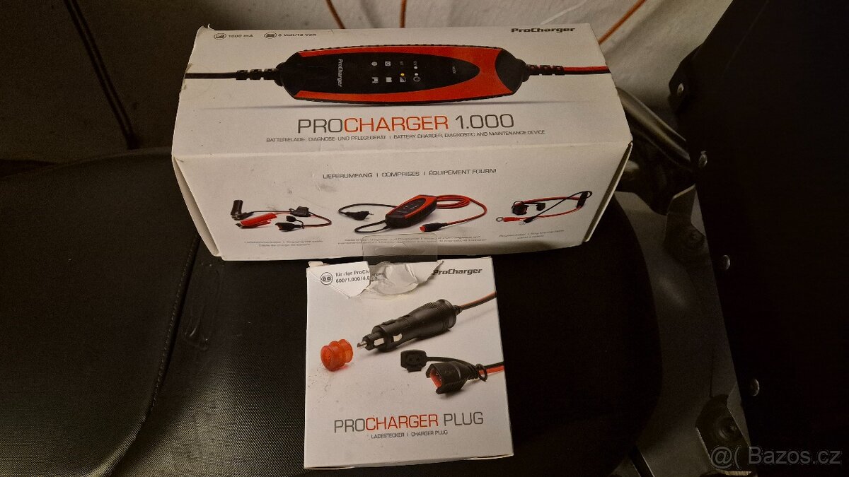Prodám novou jen odzkoušenou nabíječku moto i auto baterii procharger 1000 6v 12v pro olověné gelové a ca akumulátory.má i funkci regenerace a udržování.3typy koncovky k přehození jedna i do autozapalovače cena nové 1200kč a koncovky po 300kč