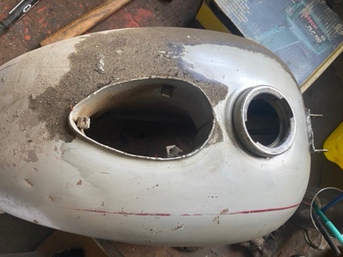 Jawa pionýr - [14.3. 2026]Palivová nádrž na Pionýra, po GO
