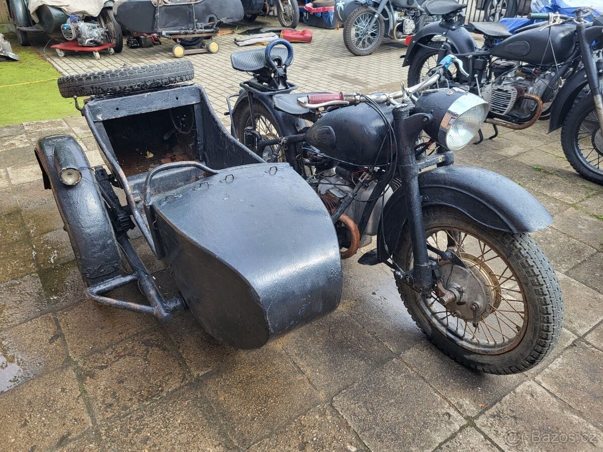 Prodám M72 z roku 1958 motocykl má kola na plochých bubnech,originální převodovku a dyferenciál,přední odpružení.originální karburátory K37.Motocykl bude s polskými doklady k přihlášení na bílé značky.Motocykl se nachází v Polsku.V ceně je zahrnuta doprava až k Vám.Pro lepší komunikaci je možná domluva přes kolegu v česku prostřednictvím kontaktního emailu.Podívejte se i na mé další inzeráty.K motocyklu je natočené video.