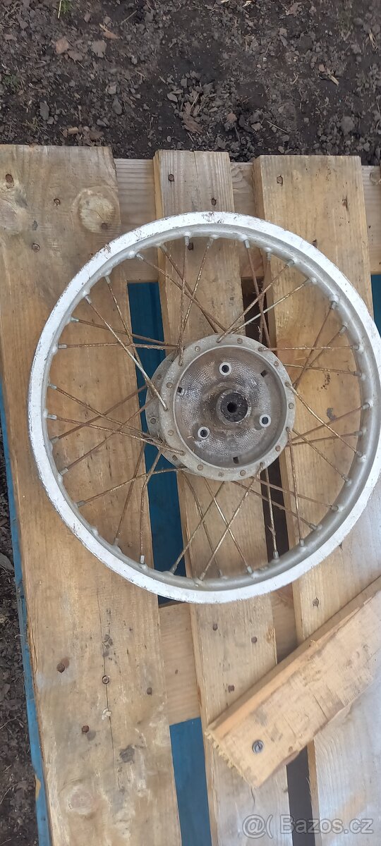 Prodám kolo na Simson S51, hliníkový ráfek mírně poškozený. K použití lépe jenom střed kola.