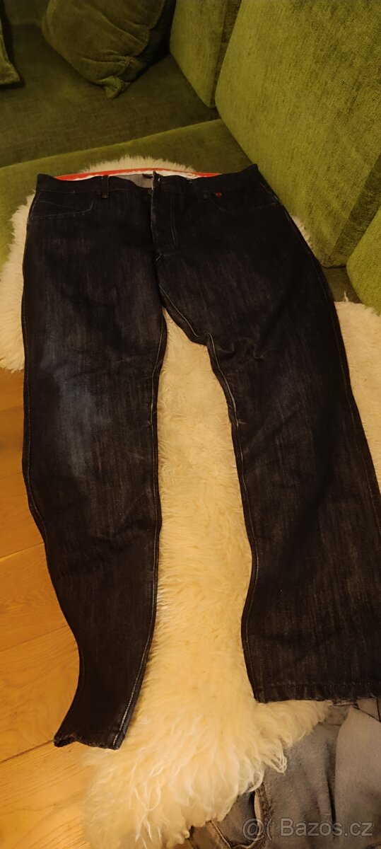 prodám moc pěkné nezničené a málo používané pánské rifle, poslouží i ženám. Chrániče na bocích i na kolenou.