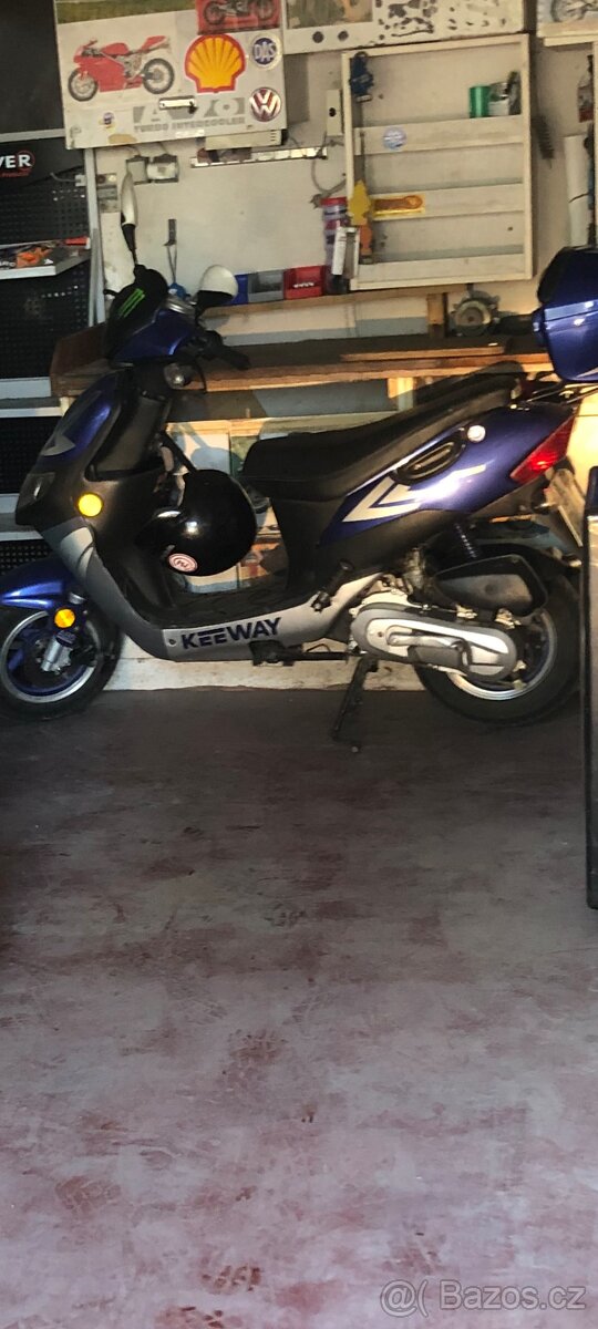 Prodám skůtr,zn.keeway,obsah 50,r.v.05,malý nájezd,s papíry a platnou STK,pojizdný,+kufr,nevyužiji,víz foto.