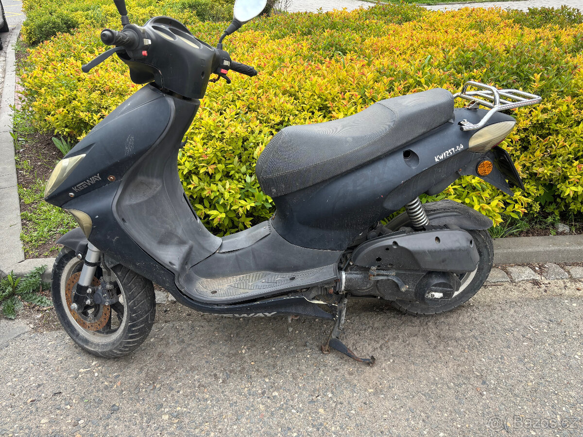 Prodám skútr KEEWAY 125 ccm (KW125T–4A) 5,1 kW r.v. 2005. Stav tachometru 16 200 km. Skútr jezdil pěkně a má zánovní pneu. Ke skútru také daruji ZDARMA novou zabalenou AKU baterii.
