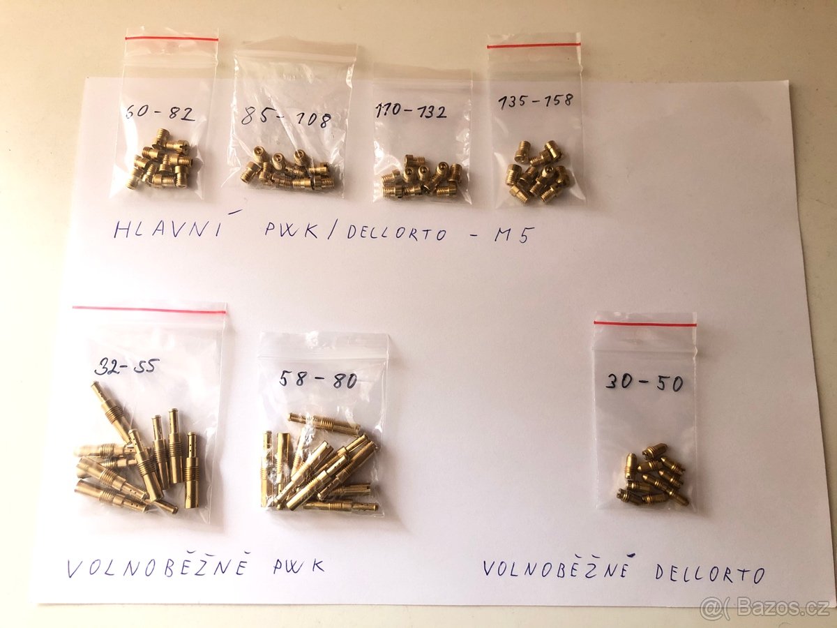 Sady trysek pro karburátory PWK a DellOrto. V sadě vždy 10ks. Cena za 1 sadu.