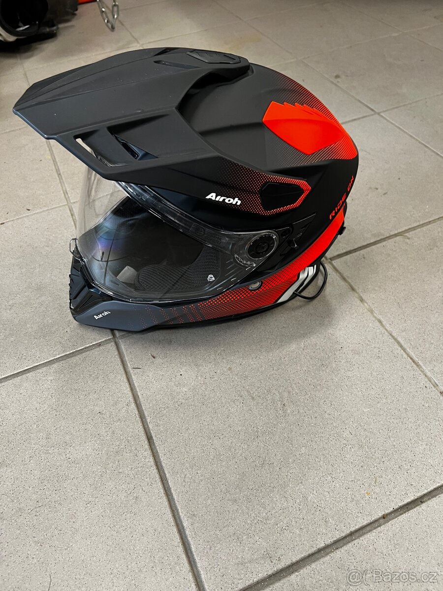 Moc hezká helma značky Airoh, stav 9/10. Helma určená na cestovní enduro nebo adventure. Clona proti slunci. Vel. M