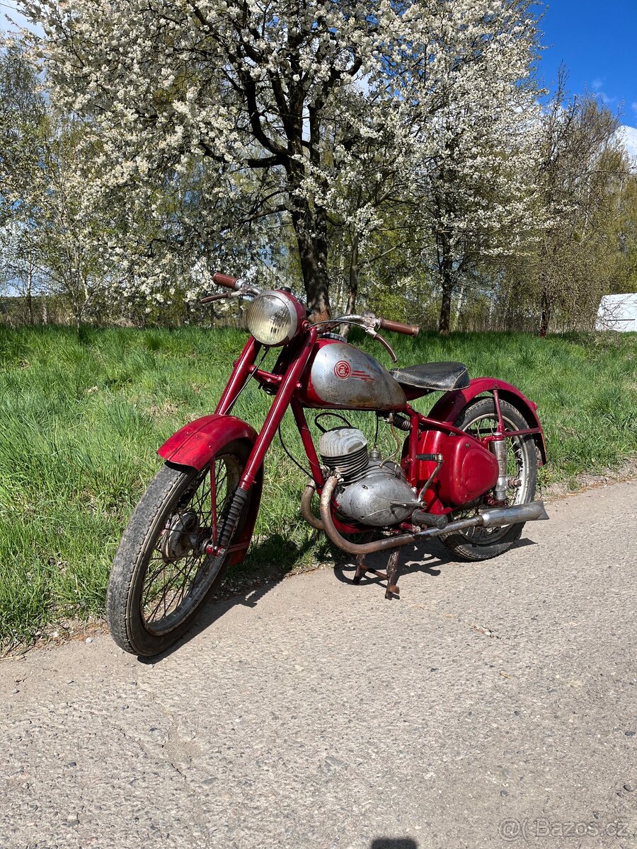 Prodám pěknou původní ČZ 150c , rok výroby dle štítku 1951, nemá TP ani RZ. Moto lze nastartovat, řadí a svítí. Originál stav bez replik na případnou renovaci nebo ponechat ve stavu původním. Jsou vidět místy i původní zlaté linky. Případně mohu poslat video v nastartovaném stavu.