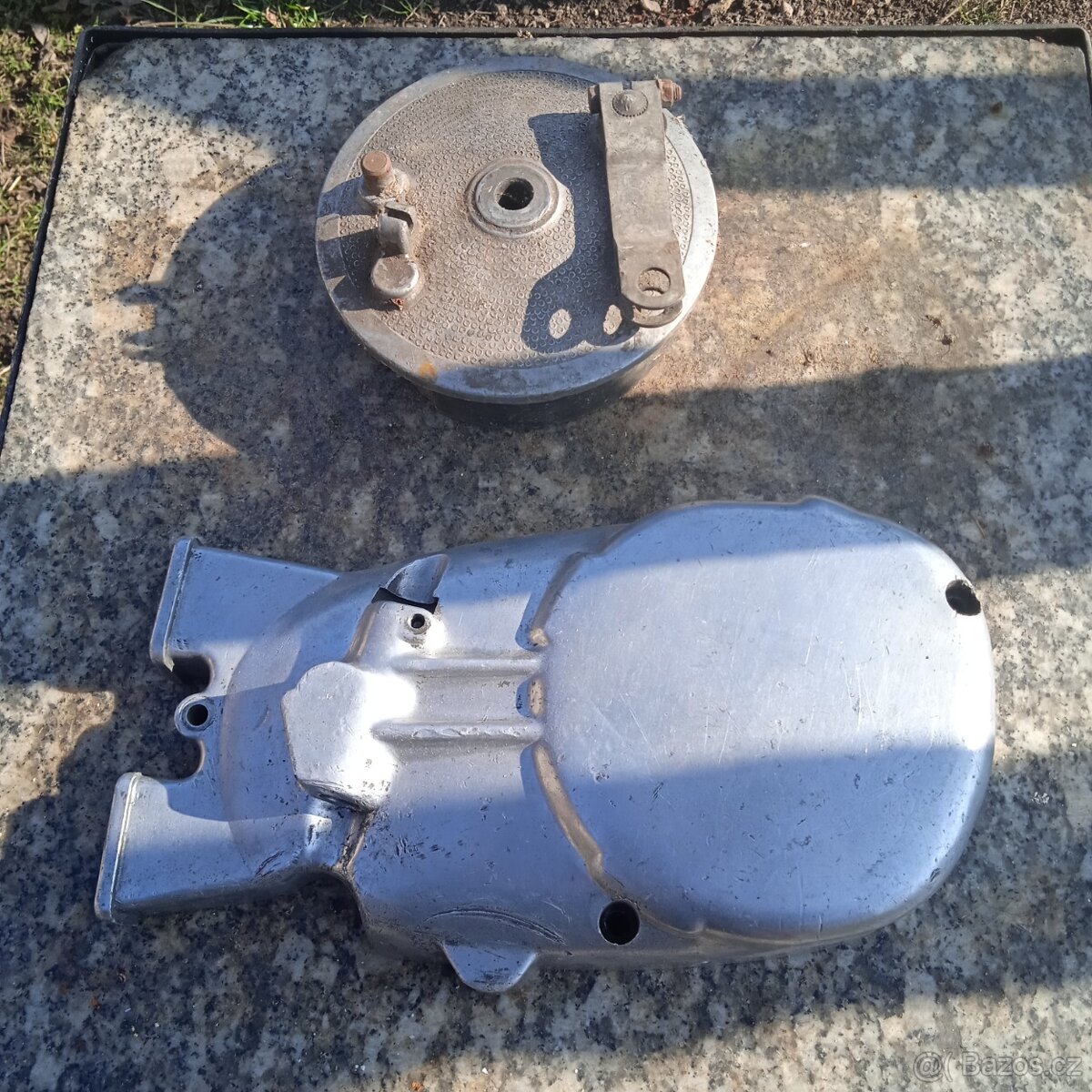 Jawa 50/05 - motor, výfuk, revmaplechy s nášlapi,kryt řetězu - [27.4. 2026]Motor(točí se) - 1900Kč , revmaplechy s nášlapi - 900Kč , výfuk doutník - 300Kč , brzdy - 300Kč/pár , kryt řetězu - 600Kč , Jawa 50/23 Mustang kastlík - 400Kč .