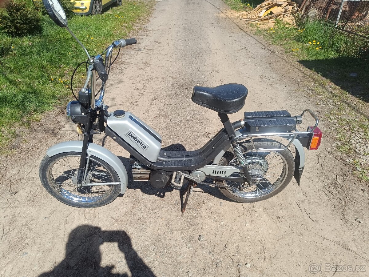 Babeta typ -215 - TOP - [28.4. 2026]Prodám velice zachovalou po 1 majiteli, vše původní- 1 rychlostní, r.v. 90 novější model, najeto 6500 Km, orig. štítek a kartička. Jezdí perfektně. Více na tel. 724047000