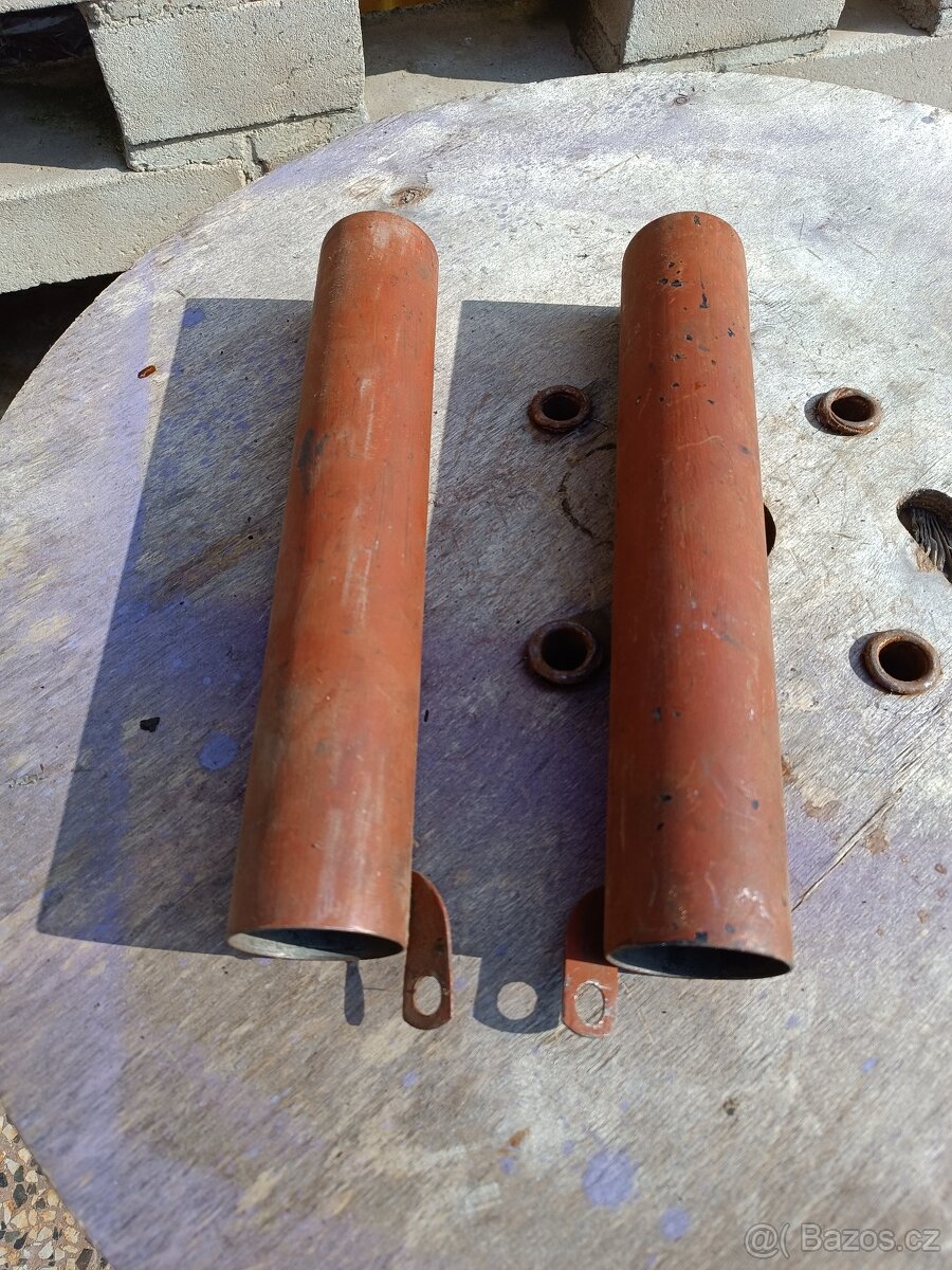 Prodám kryty předních tlumičů na Jawu nebo ČZ. Typ s oušky pro uchycení do spodních brýlí přední vidlice. Cena 700,-Kč.