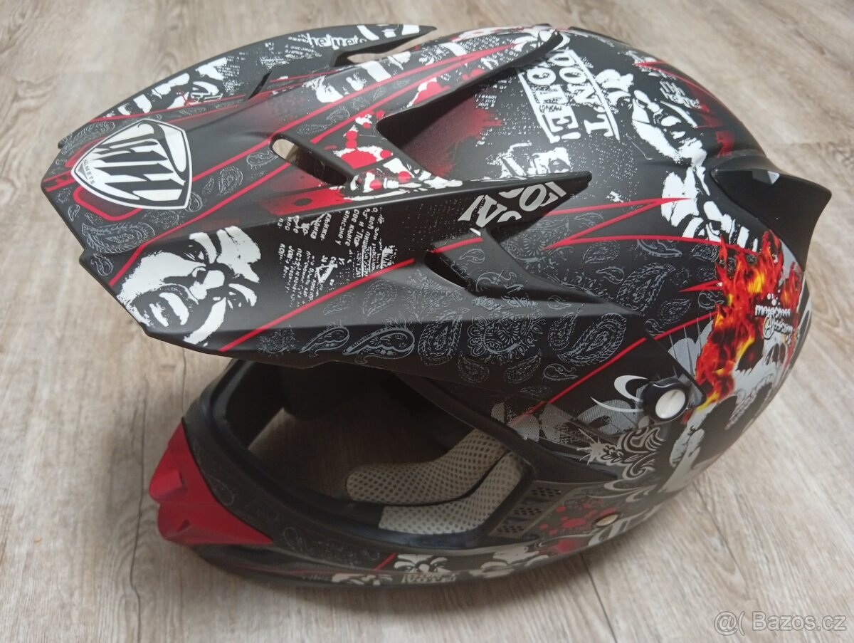 Helma na motorku L motocyklová přilba na skůtr Zed 59-60cm. - [29.4. 2026]Helma na motorku L motocyklová přilba na skůtr Zed vel. L (59-60cm), bezvadný stav, málo jetá, uvnitř čistá, plexisklo bez škrábanců. jen kosmetické opotřebení, váha 1180g, homologace ECE-R22.05, černá barva.