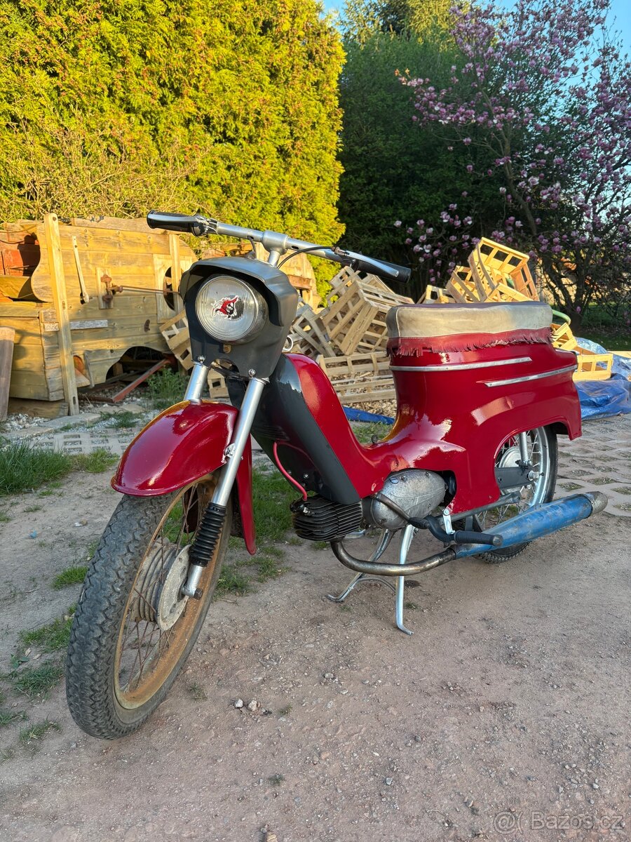 Dobrý den, rád bych prodal tohoto pionýra který je kompletní ale není dodělaná elektrika s tím že dává slabou jiskru a uchází přední kolo jinak je to pokus renovaci ale není čas dodělat. K tomu nabízím 2x SPZ, bowdeny, svíčky, mohu přidat štítek na jawa 21 sport a nějaké drobnosti. Cenu nabídněte, na nabídky pod 10 tisíc neodpovídám.